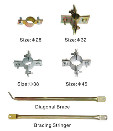 斜撐、橫拉桿和抱箍作為支架的輔助連接件,一般搭配超高支架使用,増強地板安裝結構的穩固性 。